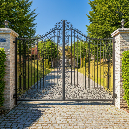 Bespoke entryway solutions featuring wrought iron and automated access systems.